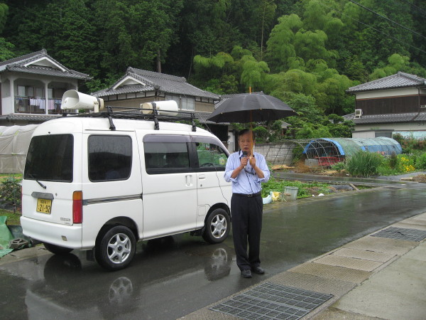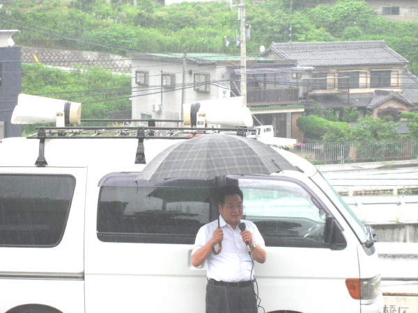 16日、あいにくの雨になりましたが6月議会報告と大震災についての街頭宣伝でした。