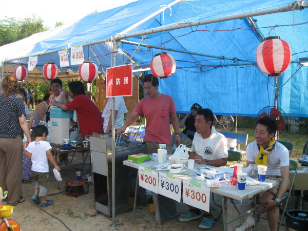 かき氷と生ビールの消防団    新町商工振興会の焼きそばは福崎町の名物