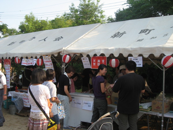 24日、新町区では天満宮で夏祭りが開かれました。