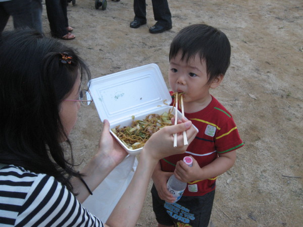 まもなく満2歳を迎える 諒も昨年に続き参加しました。  焼きソバ を完食です。