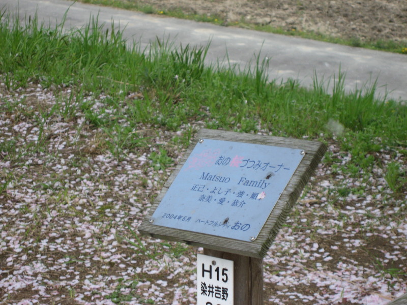 桜はオーナー制で、様々な思いや願いを込めた名盤が1本1本に記されています。