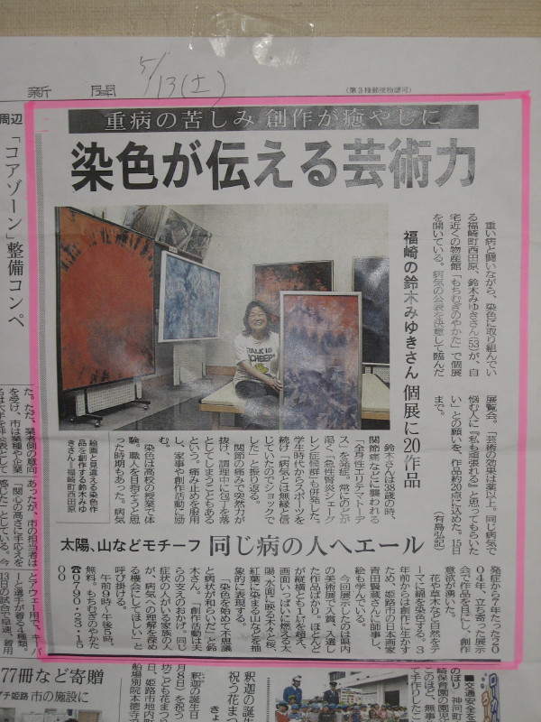 「もちむぎのやかた」で鈴木さん(辻川)の染色展がありました。
