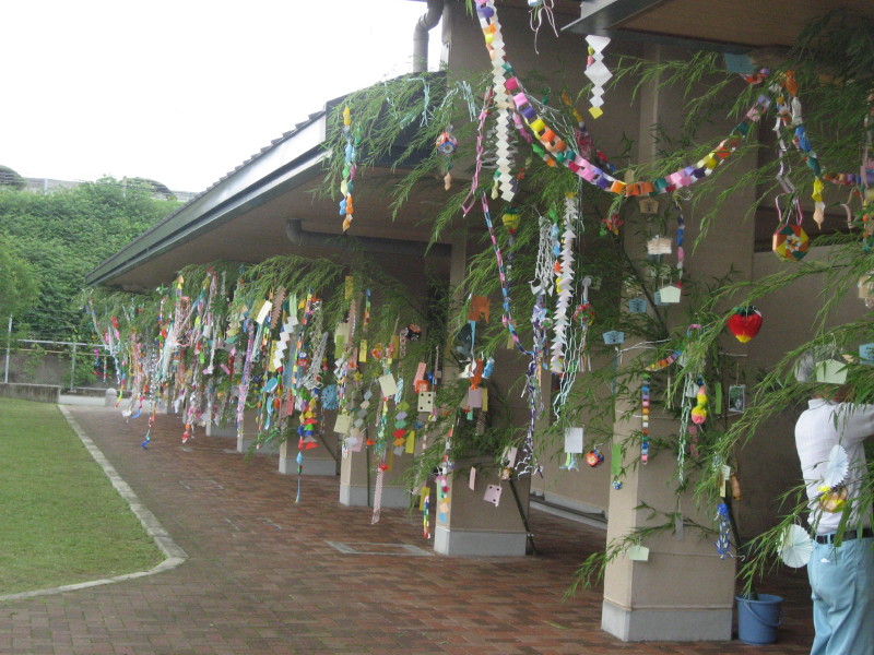 七夕です。図書館前には今年も飾りつけができました。