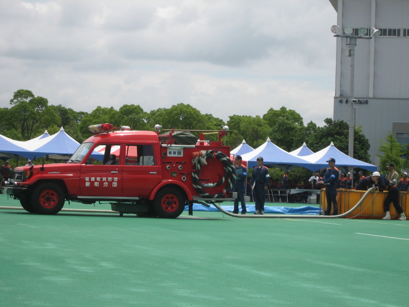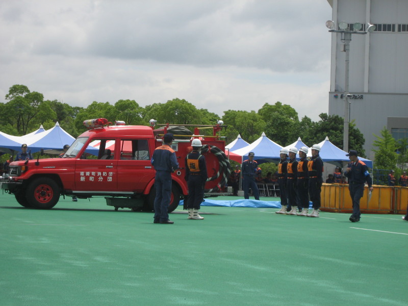 自動車ポンプの部は10チームが出場、福崎町代表の新町分団は3位入賞でした。