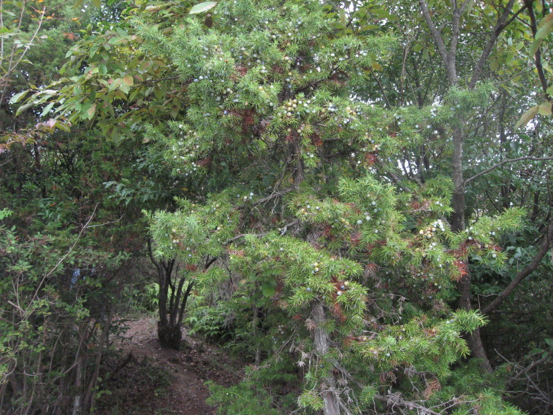 芸術的な樹や小さな紅葉を楽しみながらの下山となる。