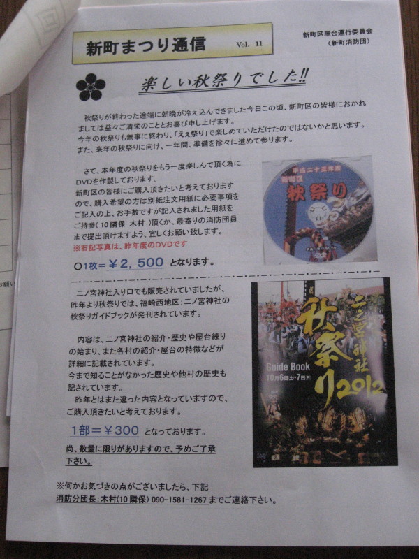 新町の祭り記録CDと二ノ宮神社の記録冊子です。
