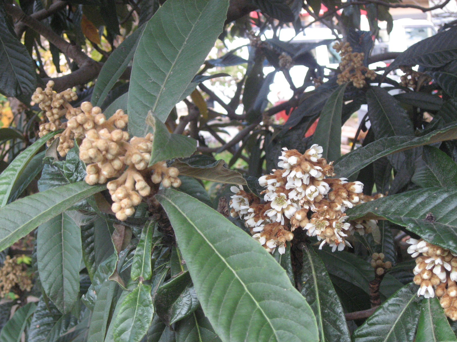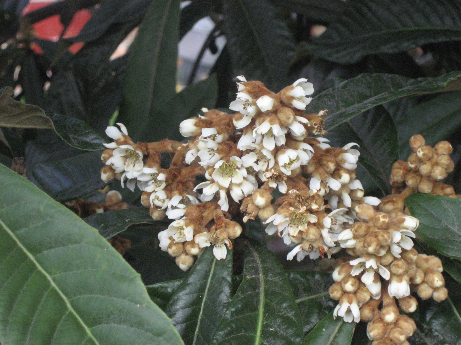 紅葉に気をとられている間にビワの花が咲き出しました。