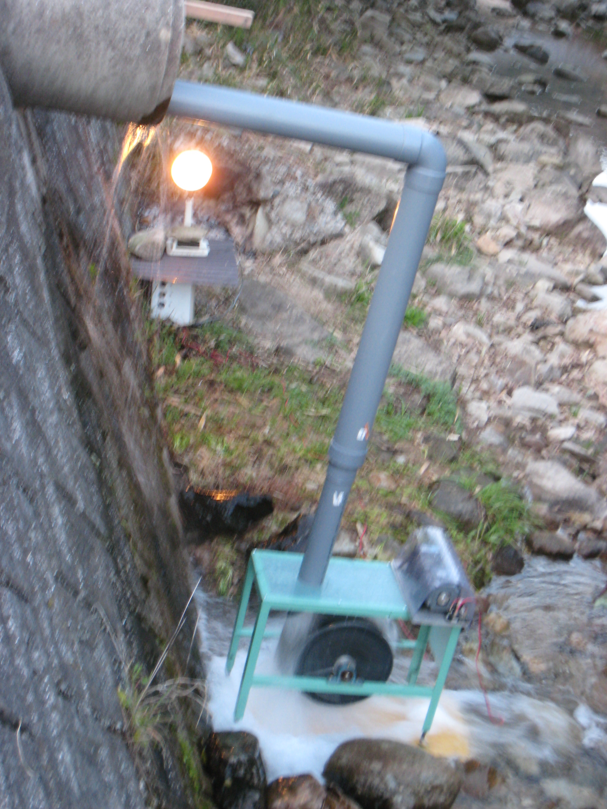 福崎町田口で手作りの水力発電機が回っています。