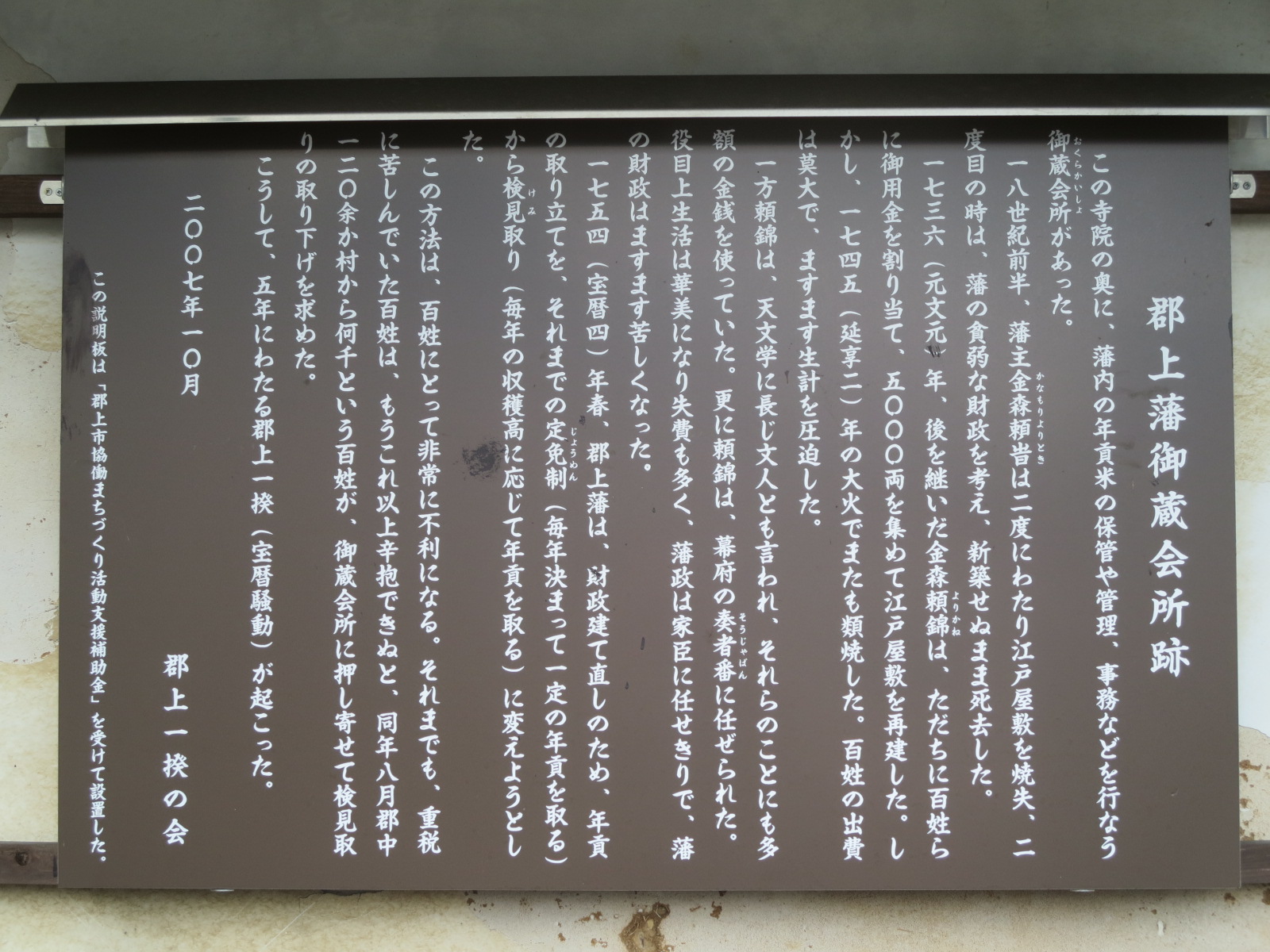 郡上八幡市は江戸時代、5年にも亘る一揆がありました。