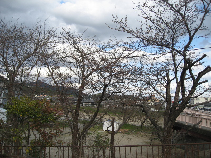 神崎橋西詰の桜が花をちらほら付けているのを、今朝見掛けました。