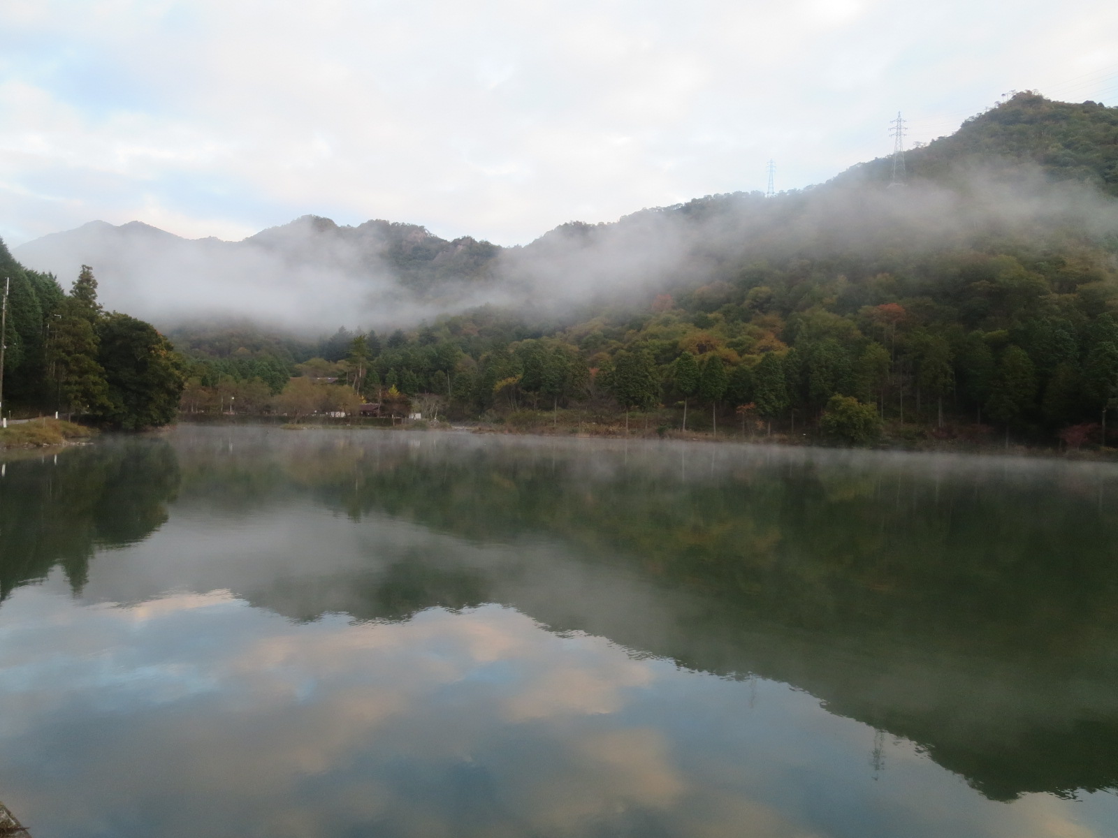 野外活動センター前の奥池から霧が立ち上がりキリッとした感じです。