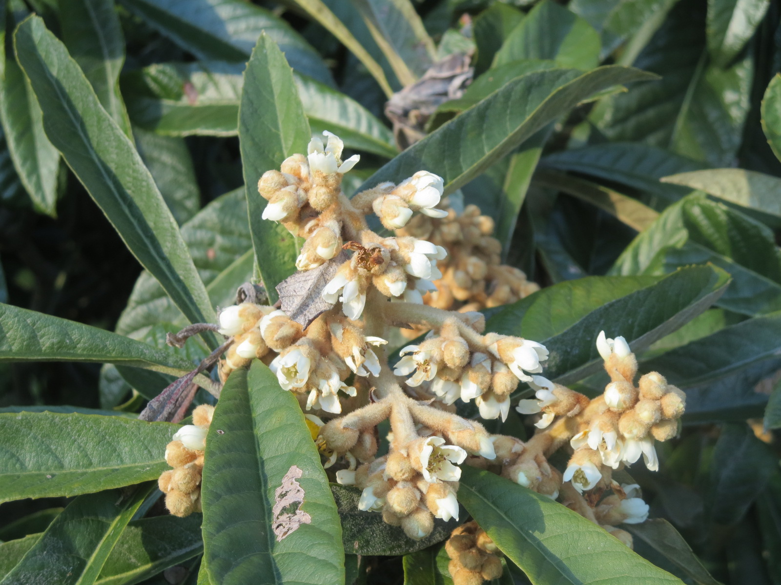 ビワの花が咲き出しています。