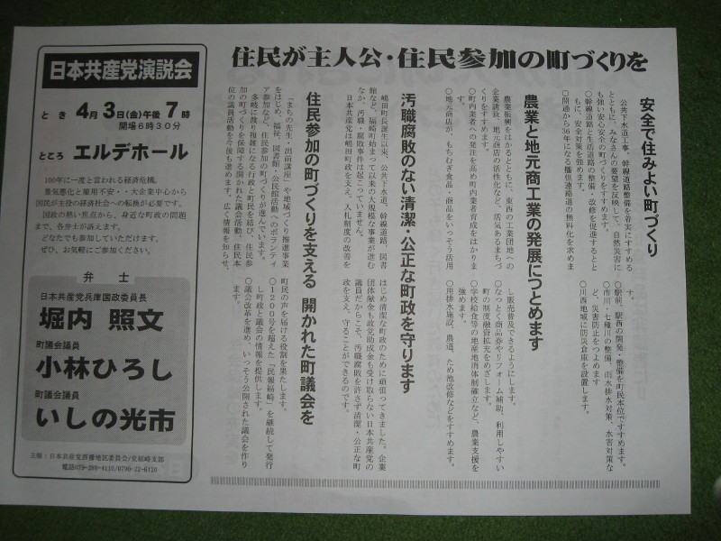 町議選に向けた党福崎支部の政策発表の民報福崎
