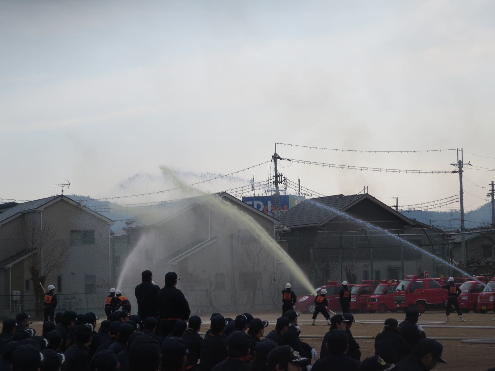 写真は代表の3分団による初放水。