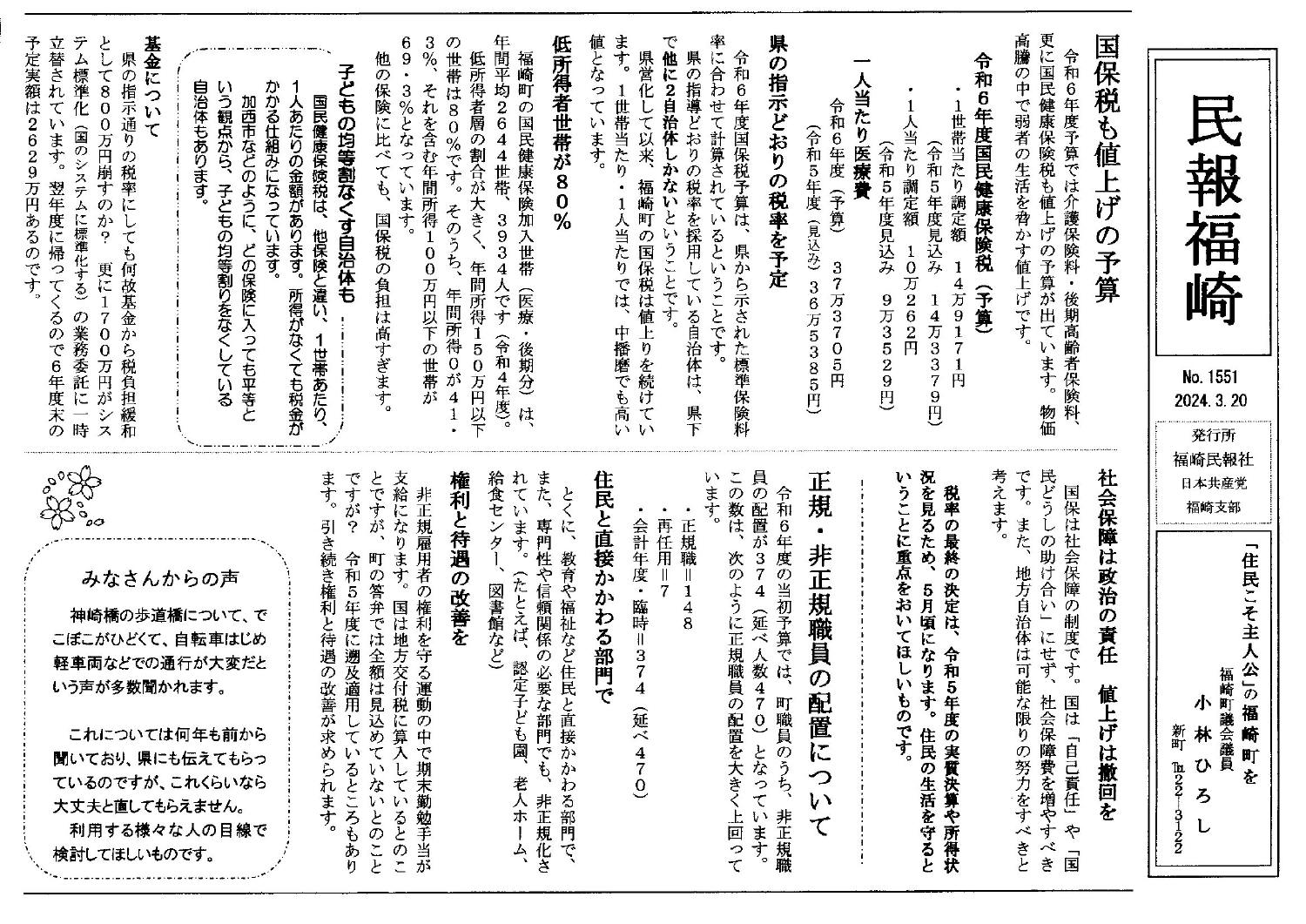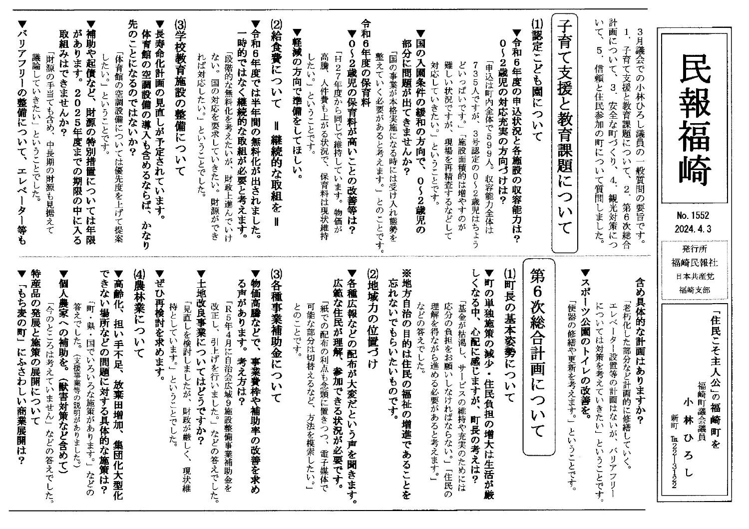 2024年3月議会の一般質問の報告です。