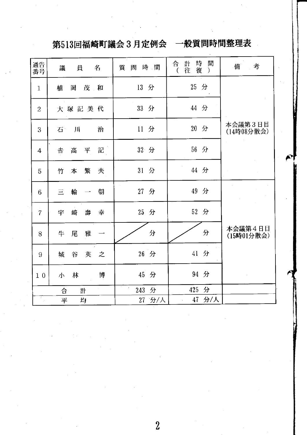 福崎町議会の質問時間は議員の発言時間のみで45分です。