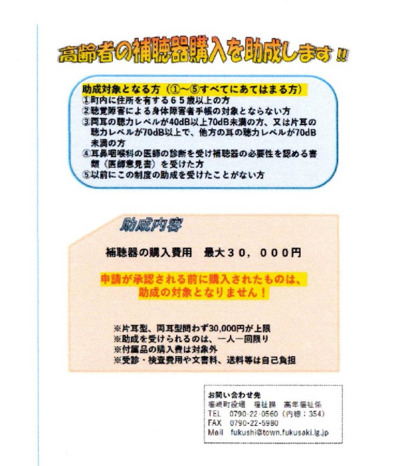 福崎町でも高齢者への補聴器購入助成制度が始まりました。
