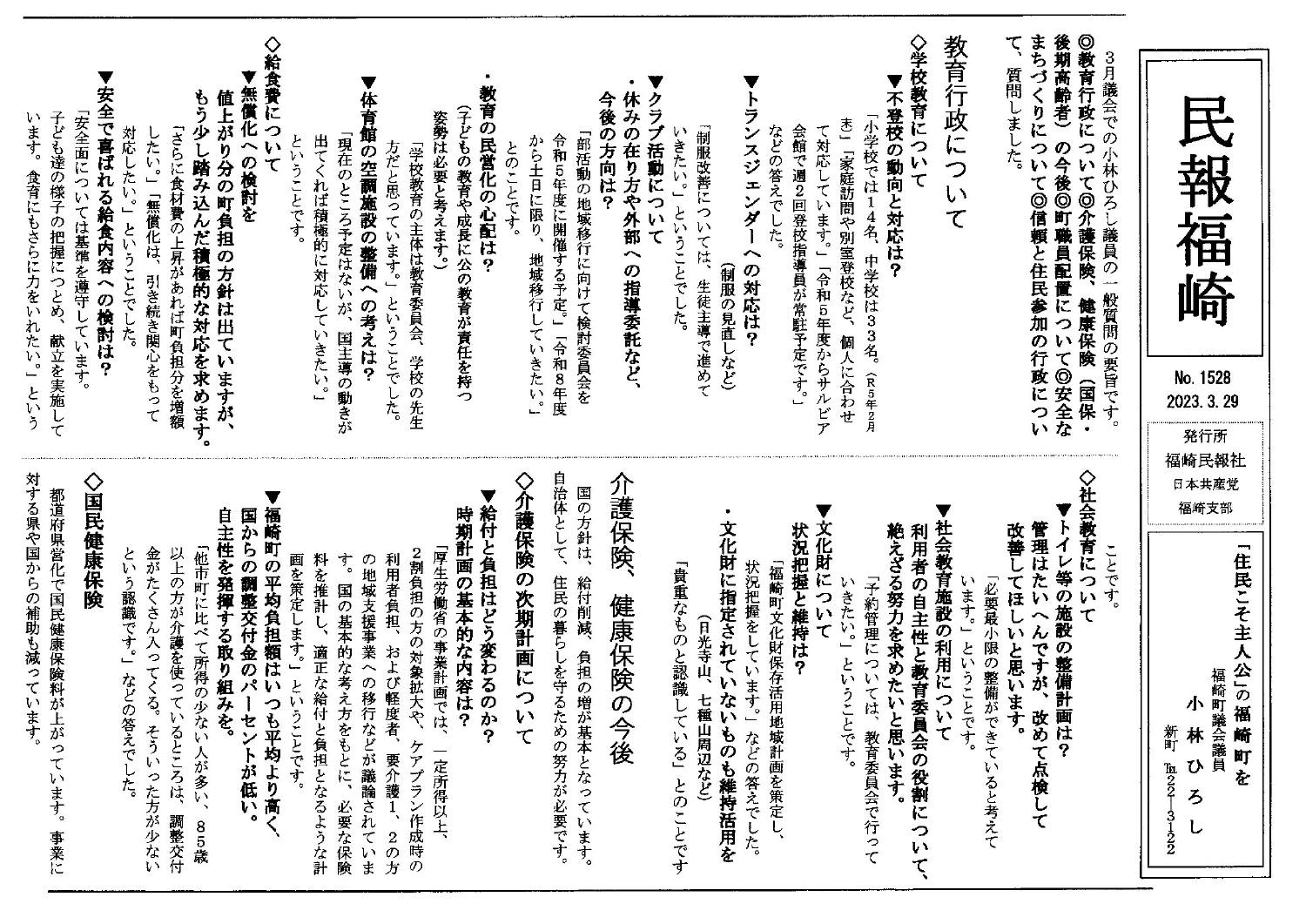 3月議会の一般質問の概要を報告します。
