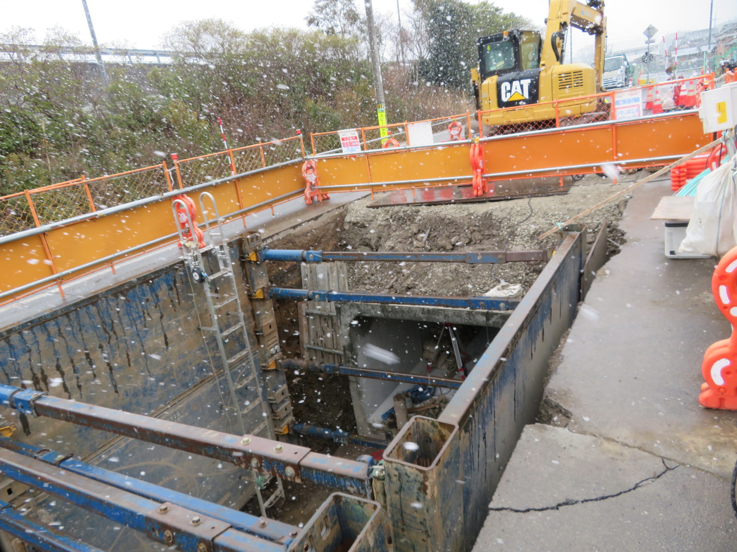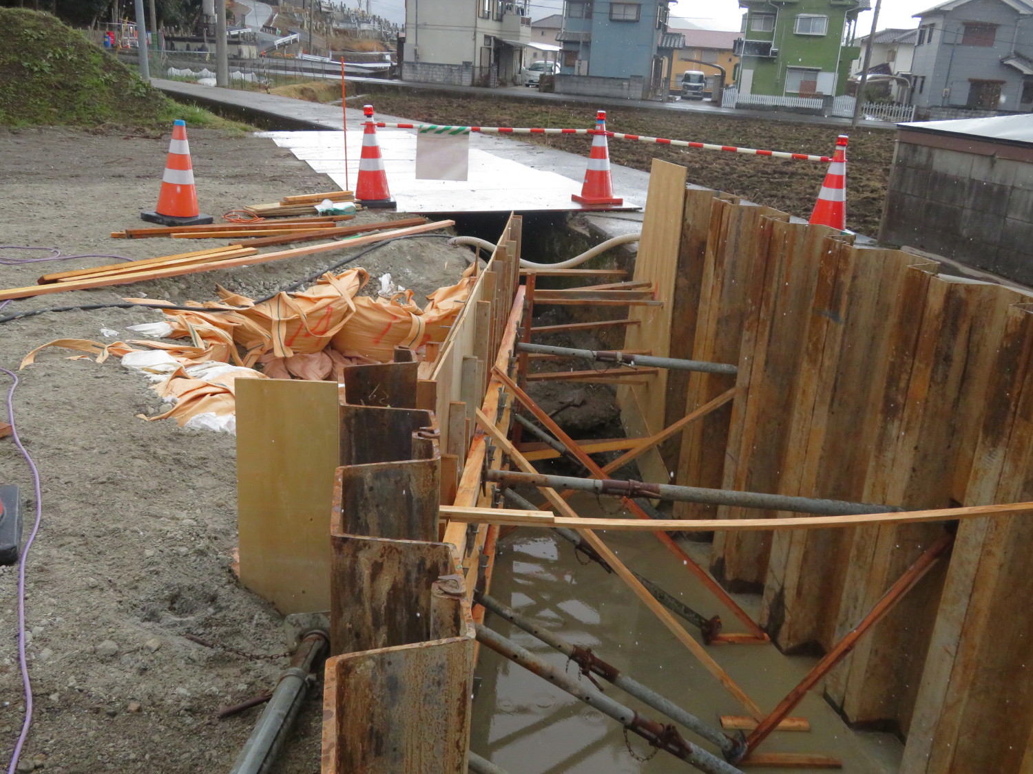 福田地区の住吉神社前から七種川の河川の整備工事です。