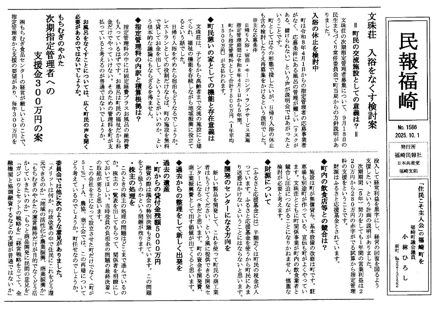 福崎町の交流施設、文珠荘の次期指定管理をめぐり
