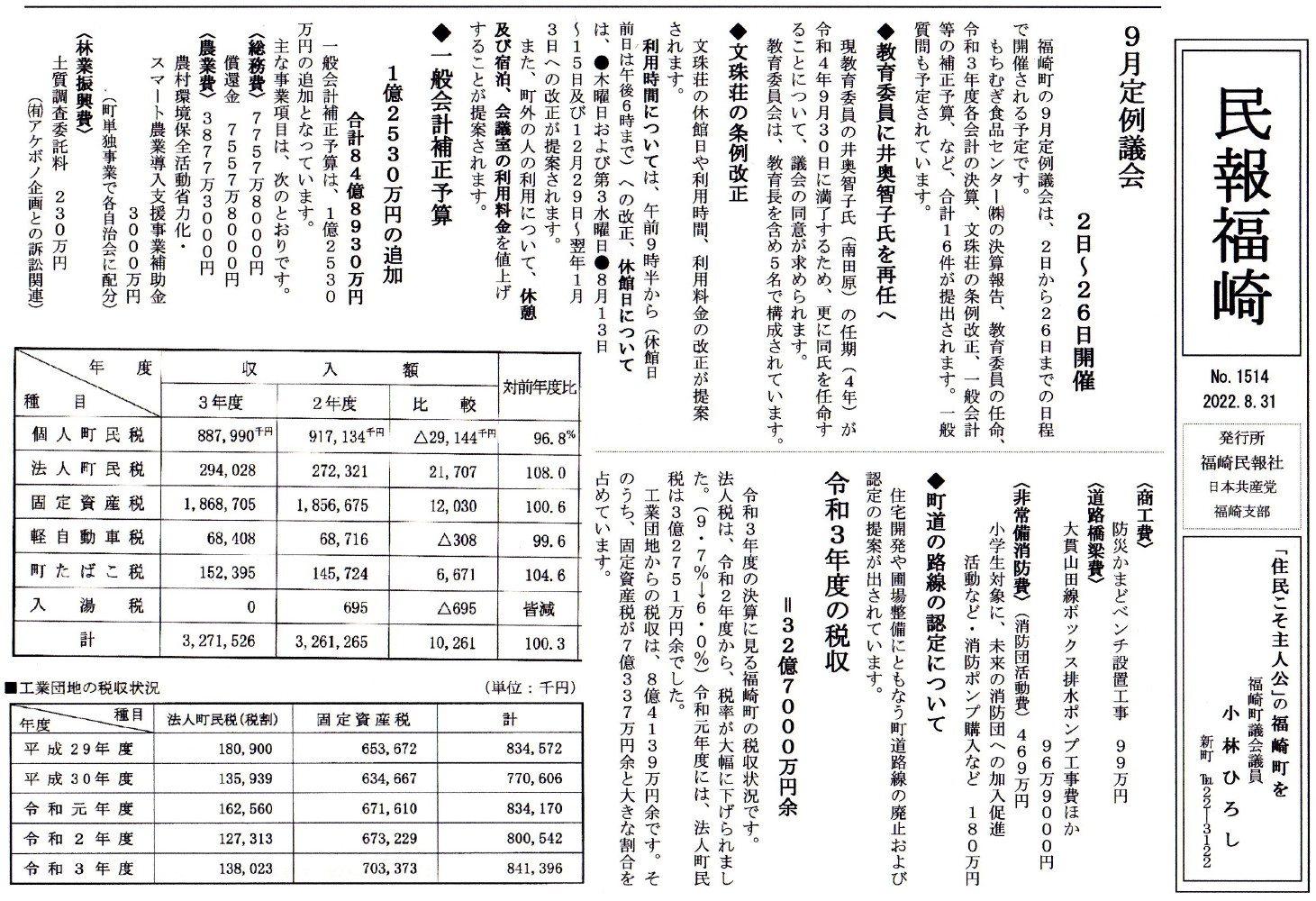 9月定例議会が始まりました。月日が経つのは早いですね!
