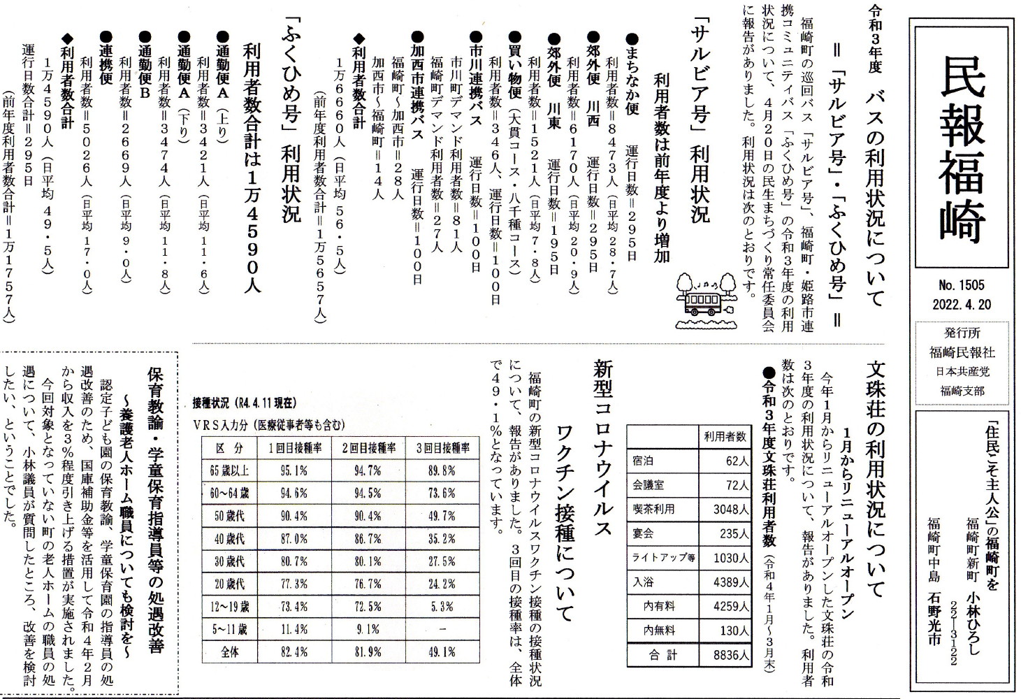 よく尋ねられる巡回バスの利用状況、ワクチンの接種状況、