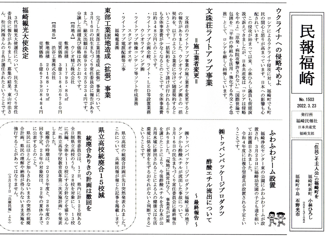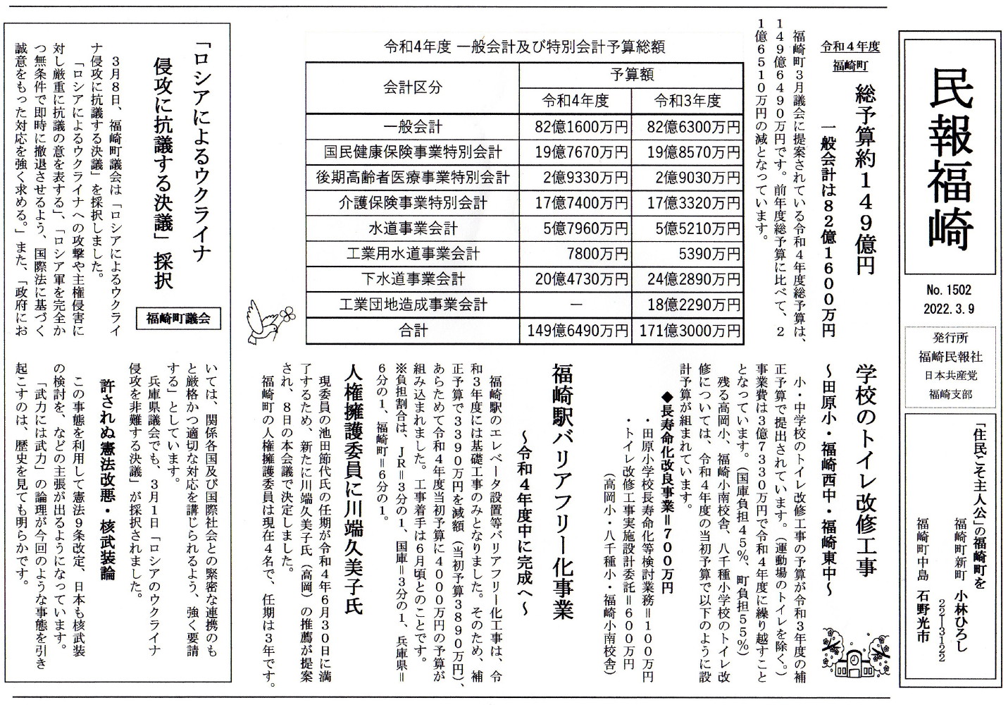 福崎町の令和4年度の予算を審議する議会が始まりました。