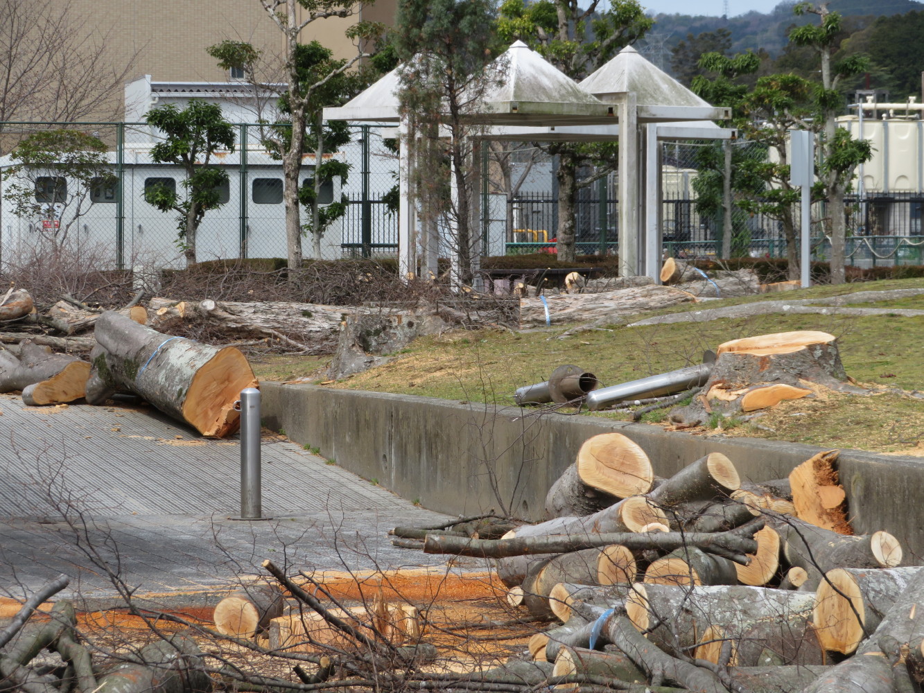 福崎町の文化の殿堂?エルデホール庭園の樹木が伐採された。