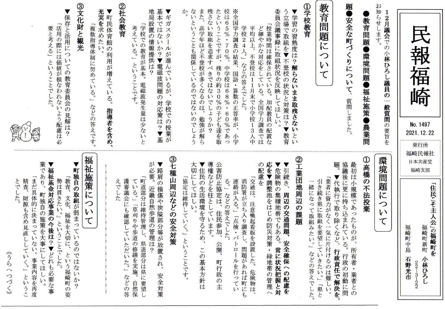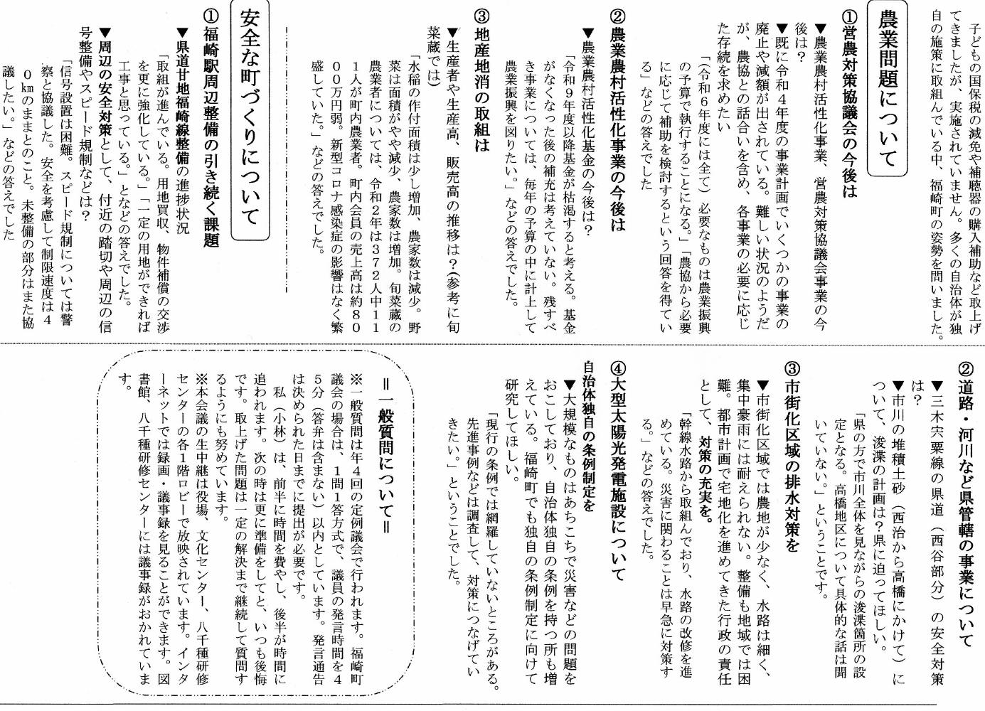 2021年12月議会の一般質問の概要報告です。