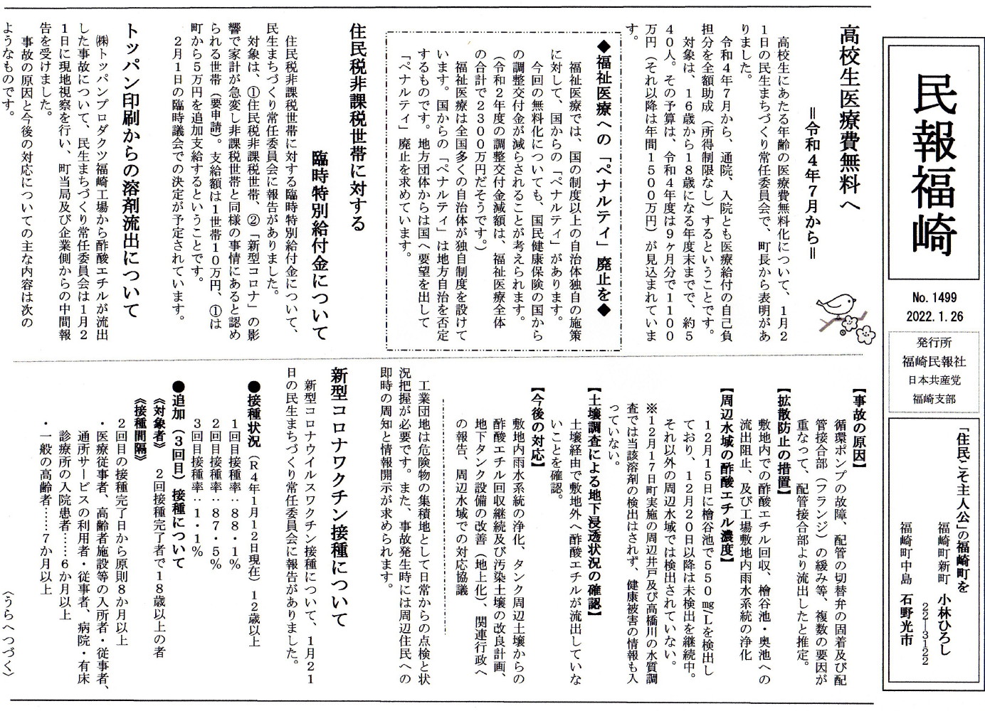 民報福崎が1500号に到達しました!