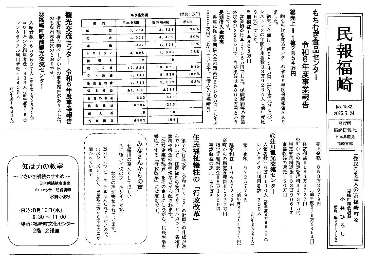 福崎町の第3セクター、㈱もちむぎ食品センターの決算報告です。