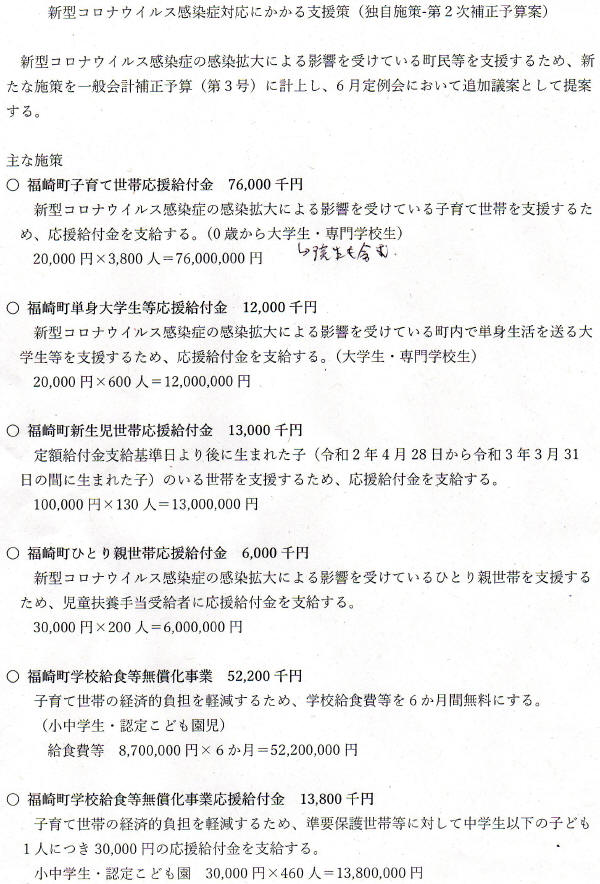 「新型コロナ」対策として町独自の第2次施策(案)がしめされました。