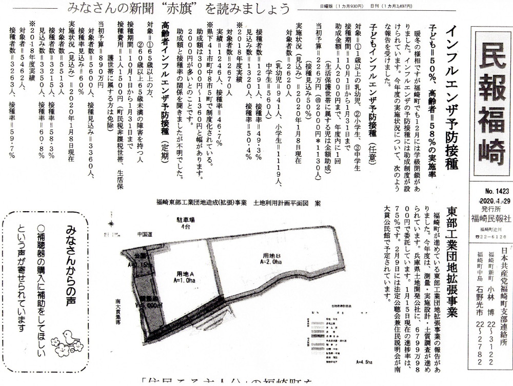 福崎町での予防接種の状況を「民報福崎」に掲載しました。