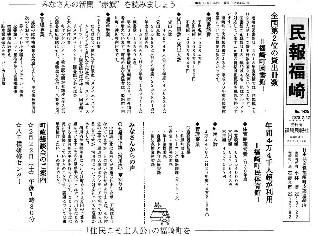 12月定例議会の報告する民報福崎を配布中です。