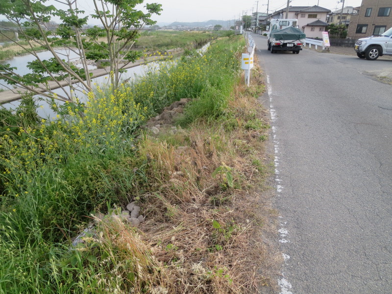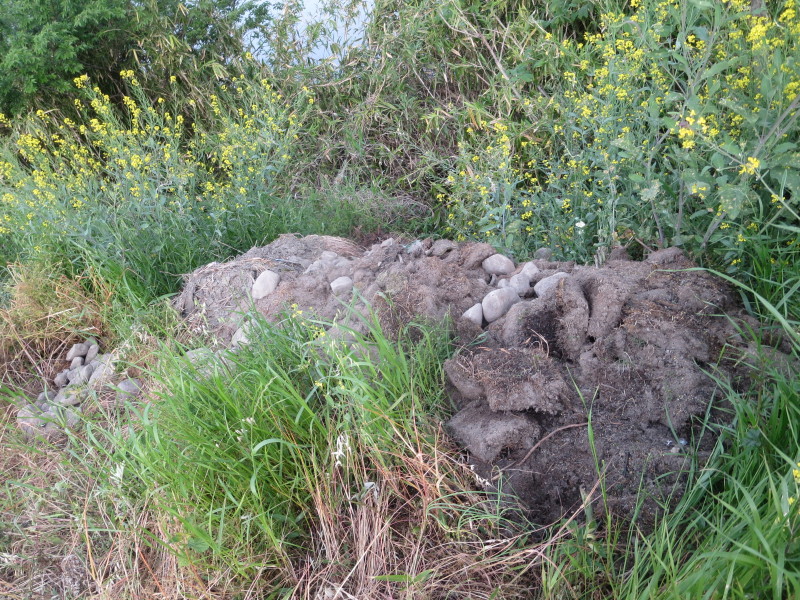 市川の新町井堰付近の土手に瓦礫の投棄があると連絡を受けました。