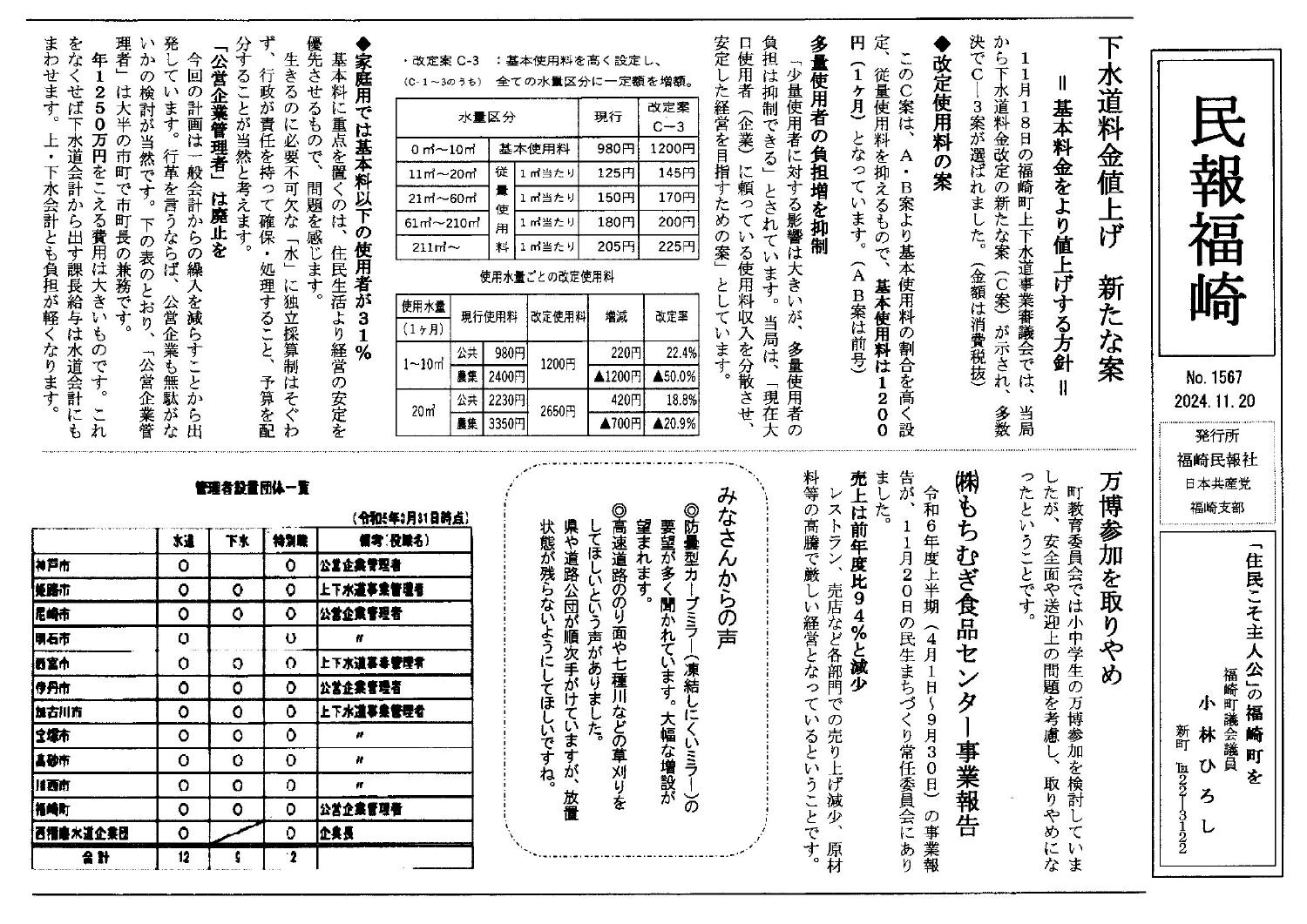 住民には福祉切せて政策、下水道料金値上げ!