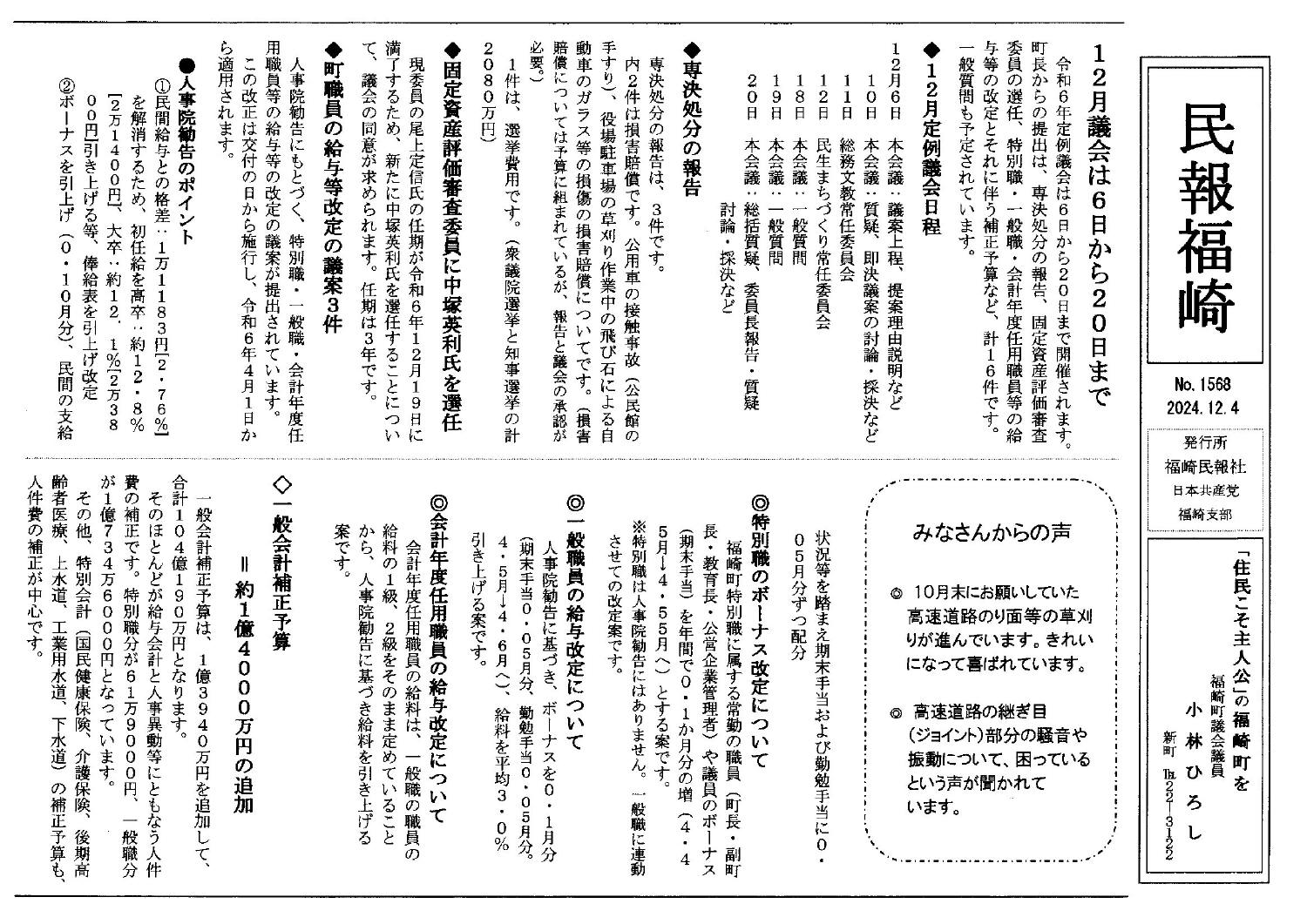 12月議会が終わりました。