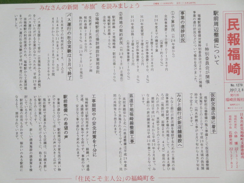 福崎駅の周辺整備事業も進みぐあいが町議会の委員会に報告されました。
