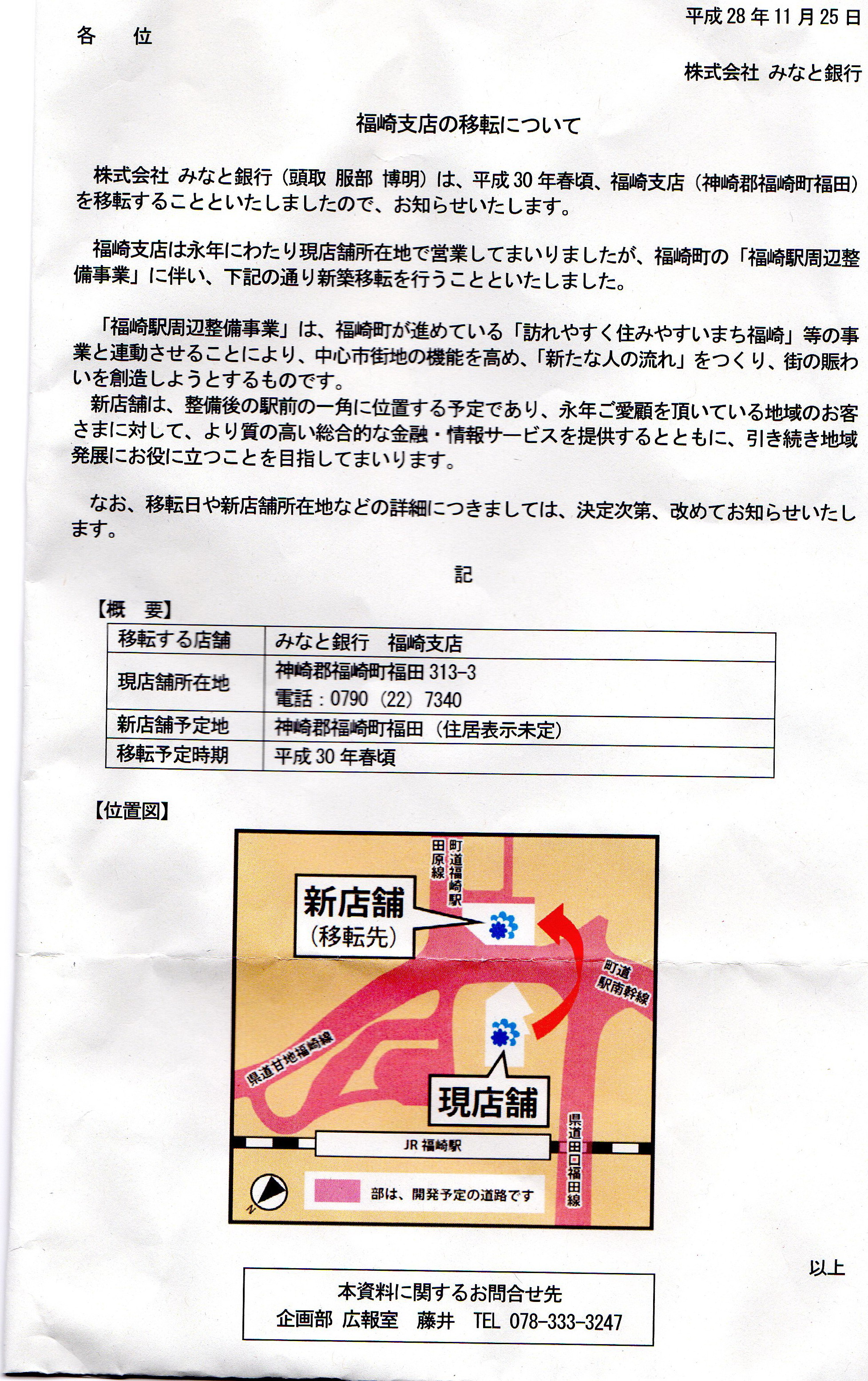 みなと銀行と福崎町双方から公表されたものです。