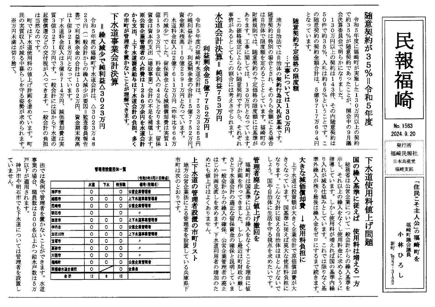 上下水道の管理者問題を中心に質問しました。