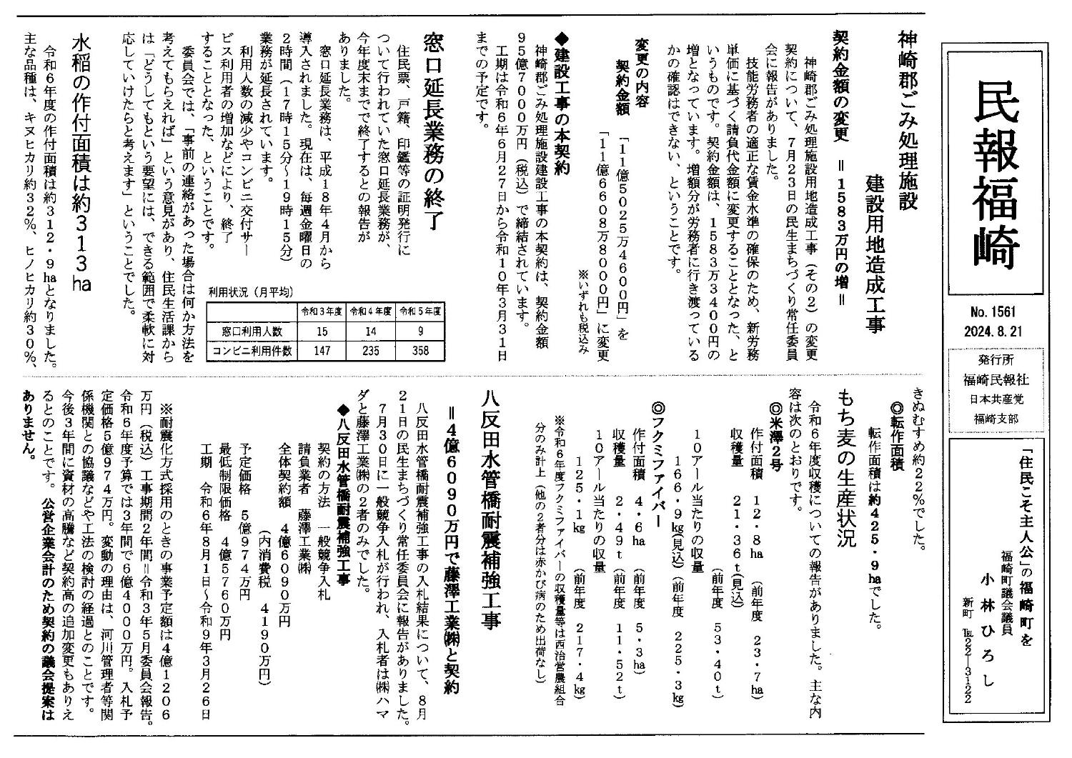 24年6月定例議会の一般質問の消費時間が町まりました。